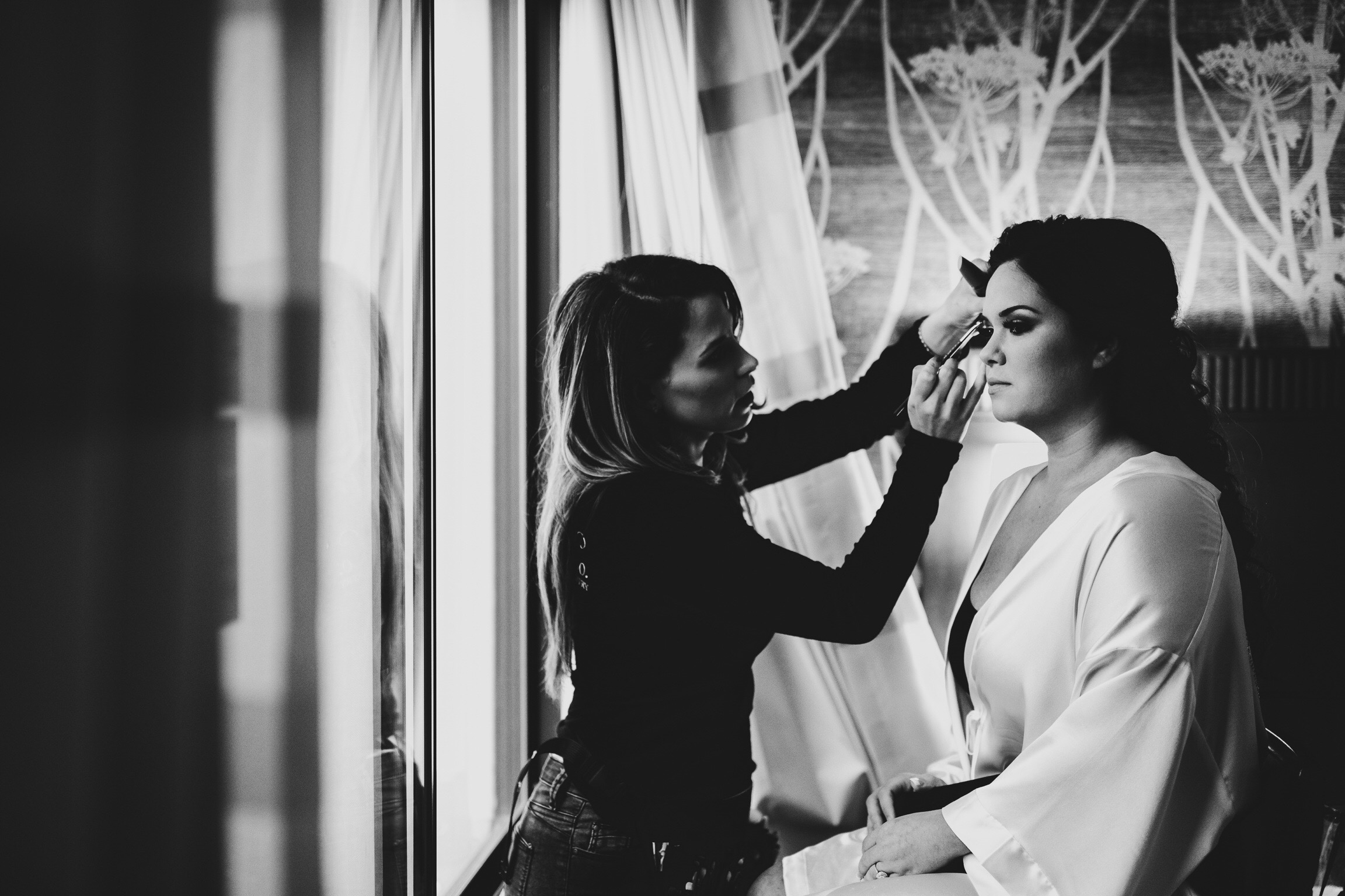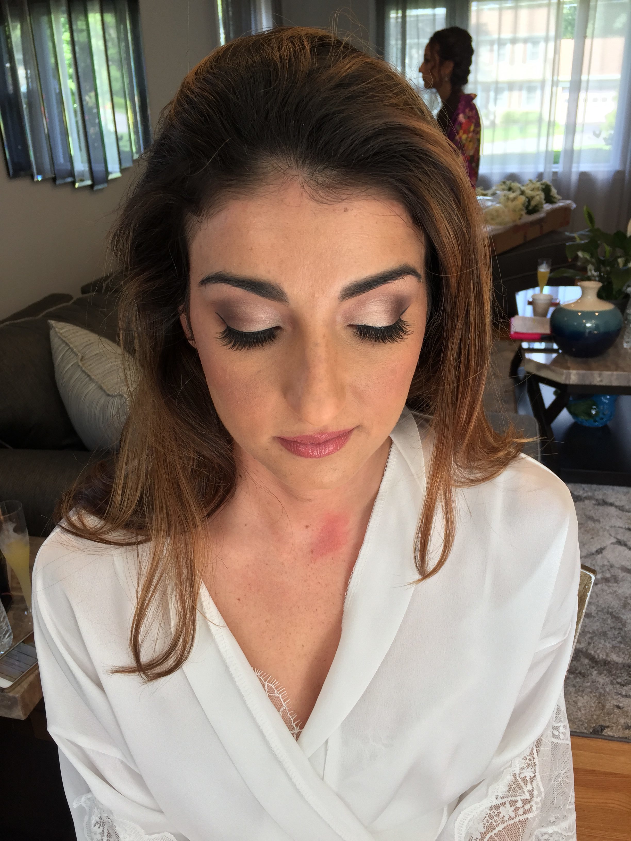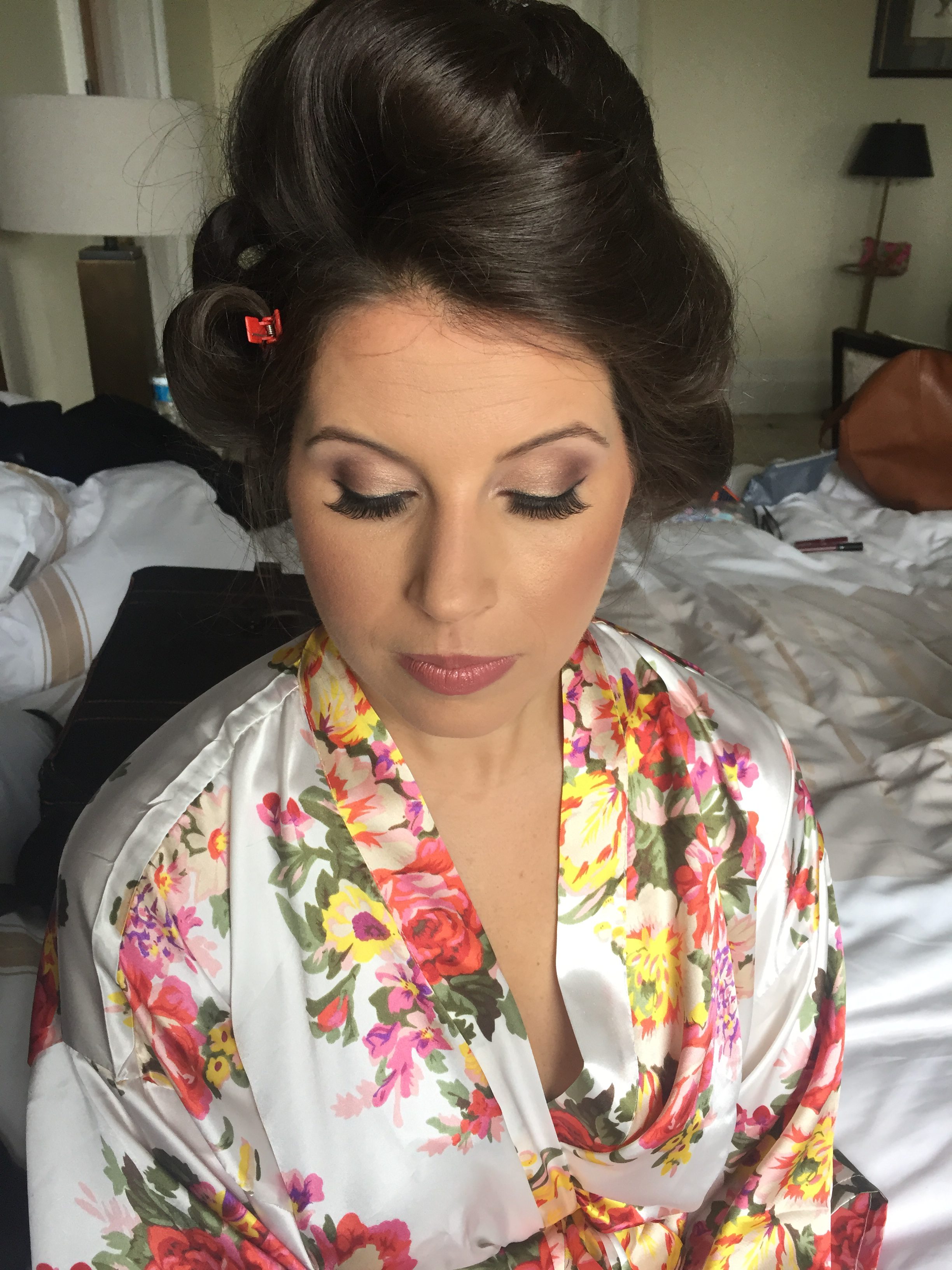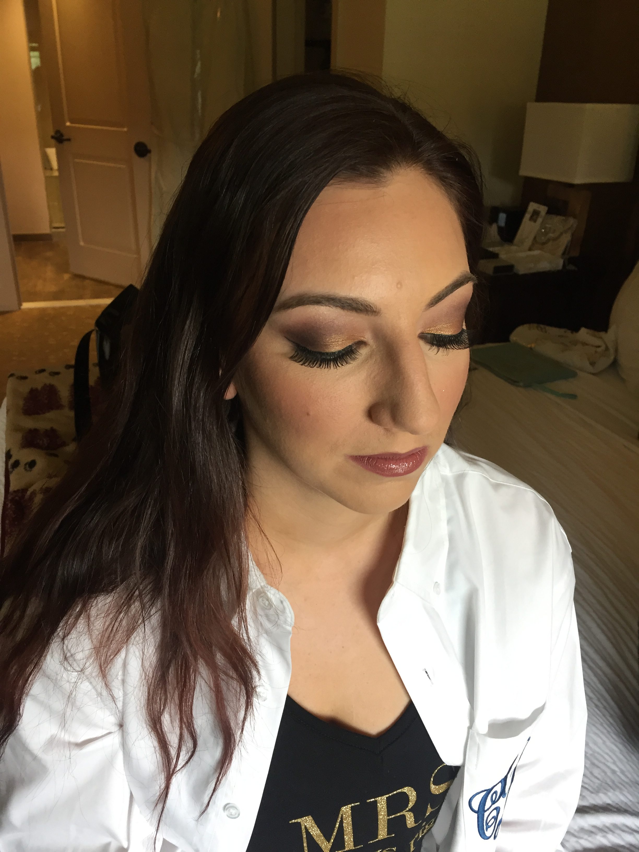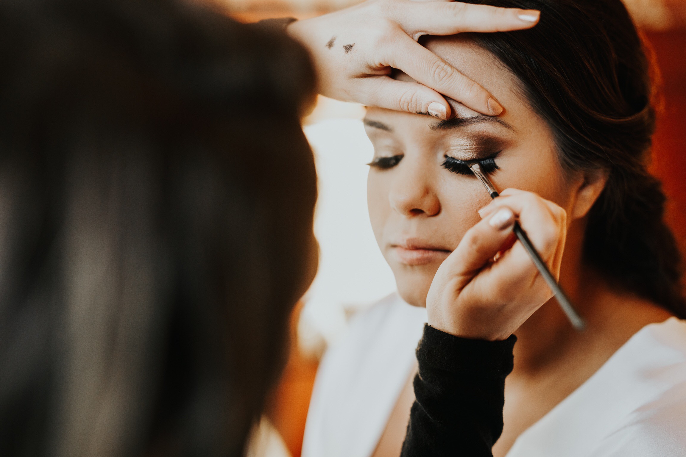 We believe that makeup is an art and should be expressed on every individual in a unique way. The first and most important step is foundation. Foundation should look and feel like skin. The technology and the quality of makeup and brushes throughout the years has evolved. It has become pigmented and can last for hours on end. Often times we get asked if we provide airbrush services. The answer is no. Although some makeup artists prefer it, airbrush is a much finer product, and thinner than normal foundation. Airbrush Foundation is so fine that it only works best on skin that is perfect, with little to no blemishes, scarring, acne, hyper pigmentation or texture (wrinkles). On the other hand, traditional foundation has a richer coverage, and is more pigmented. The reason why traditional makeup is recommended is because we use tools such as brushes and beauty blenders to blend the foundation into the skin. This technique fills and covers all of the blemishes, acne, and any hyper pigmentation. It allows us to have more control over the product and to be more precise with the look we are trying to achieve. This brings us to our next topic, makeup products. The makeup products we use are high quality, HD, and long lasting. Mac Cosmetics have long wearing concealers and foundations that last 15 hours or more. Mac Prep and prime setting powder lock it all in. We use waterproof mascara and eyeliner so you wont have any black running down under your eyes when moisture or humidity is in the air. Our techniques in combination with the products we use ensure that the desired look lasts throughout the event. Our makeup artists aim for a flawless, natural look that still allows the bride to look and feel like herself.