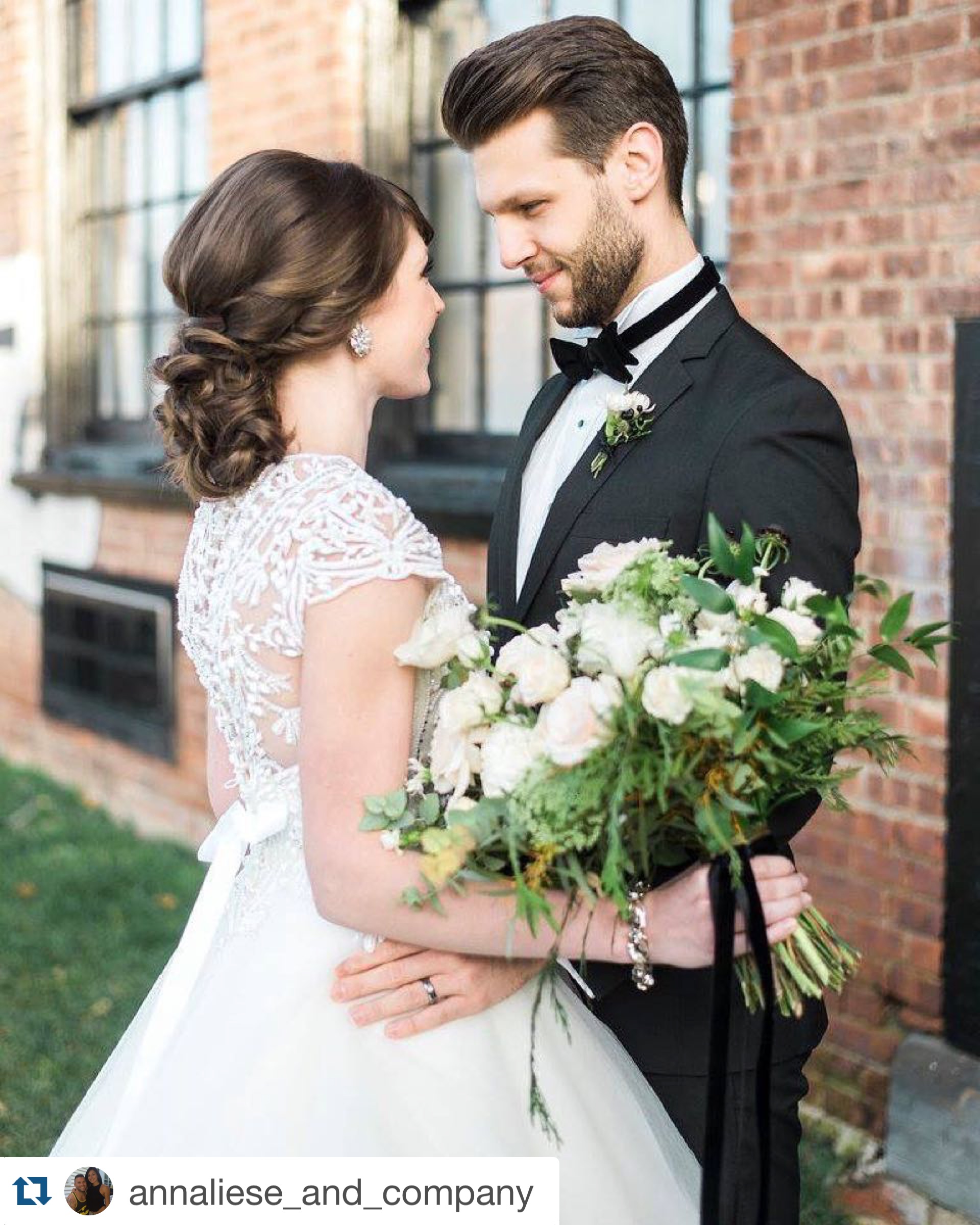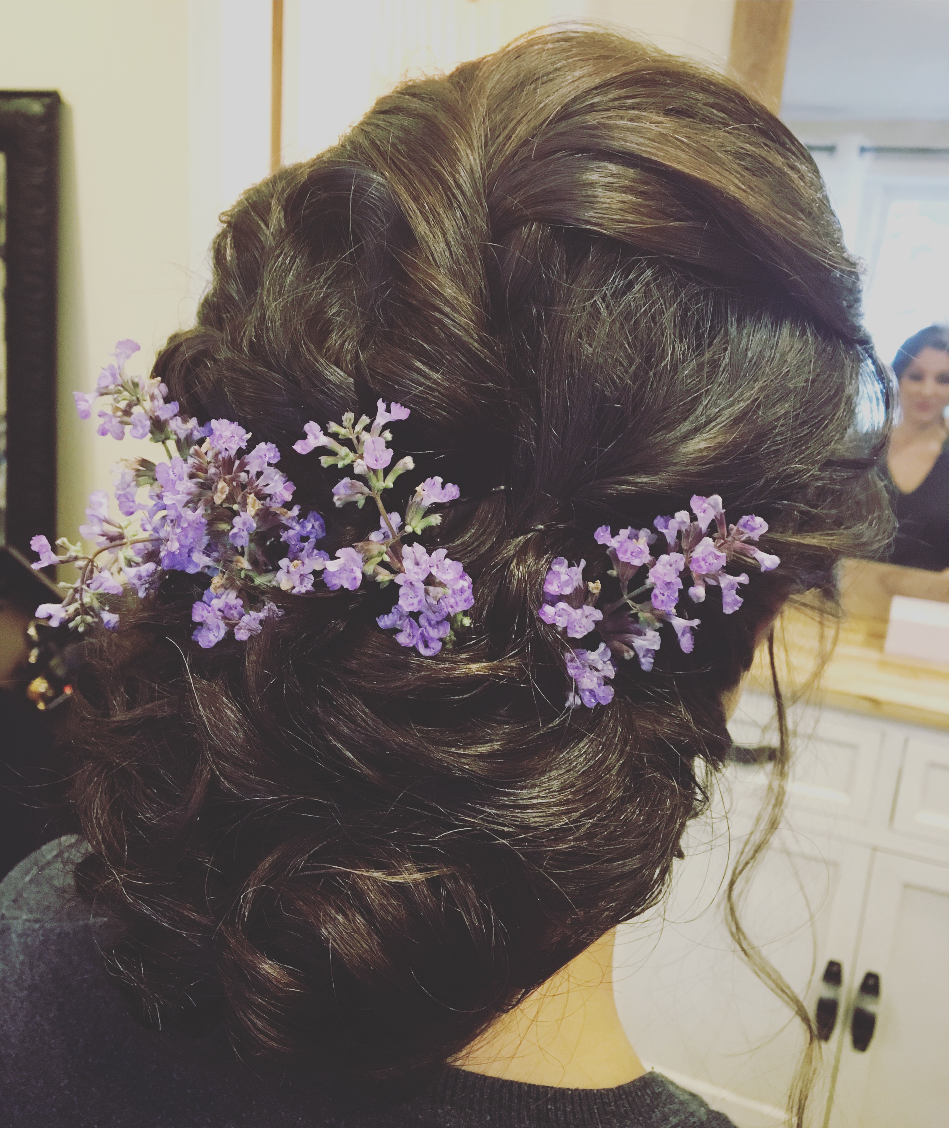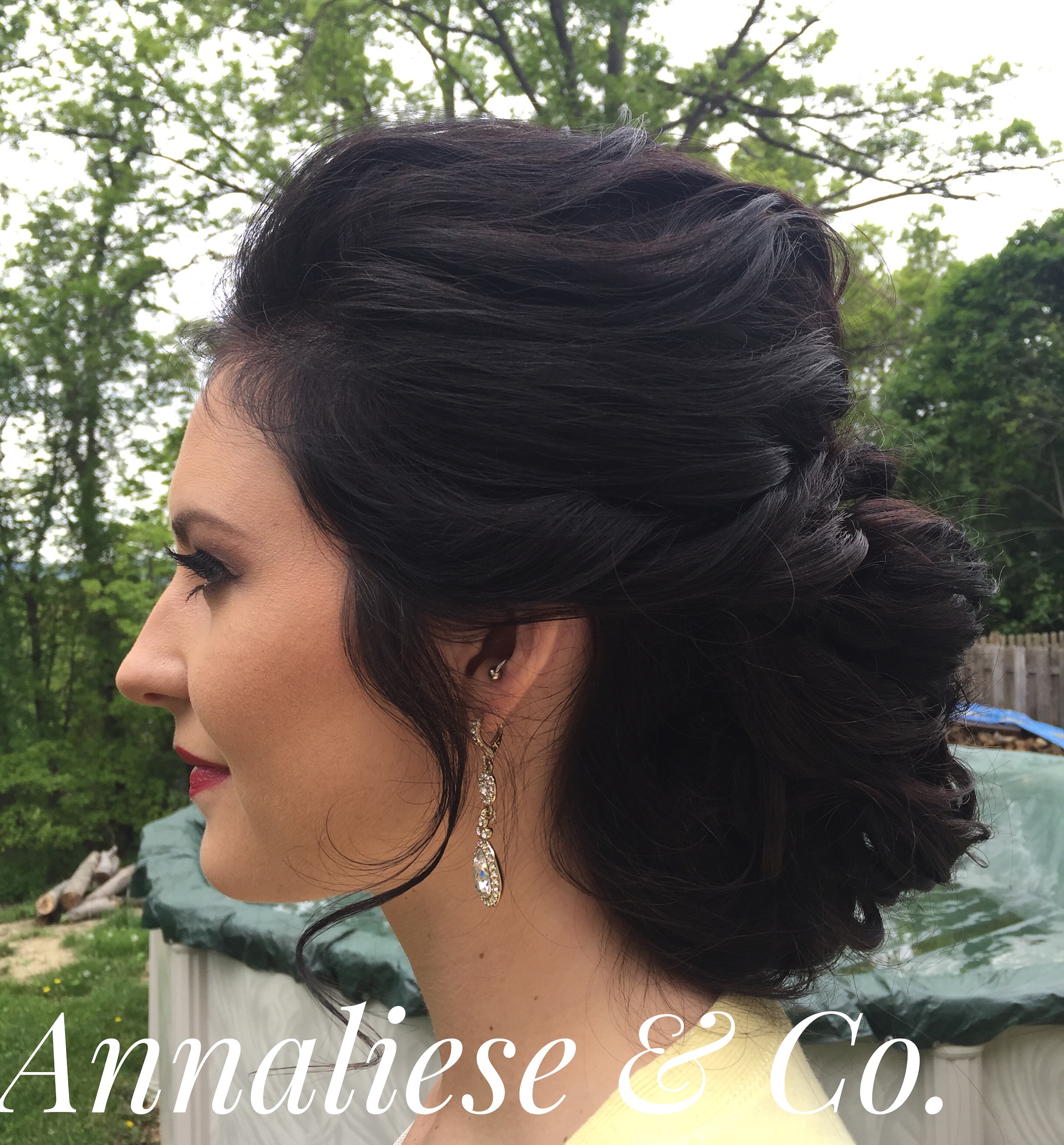 Vidal Sassoon once said “I wanted everybody to have good hair.” That could not be more true about the philosophy Annaliese & Co. has adapted. We truly care about the outcome of our work and making our brides look and feel beautiful. All of our up styles are strictly built to last. We believe in creating hairstyles that are secure yet look completely natural, loose, and romantic. When choosing an up style, we ensure that your hair will last through the first look, family photographs, the ceremony, and hours and hours of dancing. We are known for creating beautiful, flawless, detailed up do’s that can show off their beauty throughout your entire event. During the trial we take a look at photos of your dress, your jewelery, your flower inspiration and your hair and makeup photos in order to really tie together the vision you have for the most important day – which results in happy brides. Everyone wants the perfect updo. There is one for every occasion, and we will help you to find it. We can create updos for long hair, updos for short hair and every length in between. We also take into consideration styles that compliment your features and your hair type — a cute updo to complement your bangs, an elegant updo for wavy hair and even updos that work for fine or thick hair. Whatever your need — a style will be perfectly formulated for your big day. The method we use to create these long lasting styles is simple. We take the time to prep the hair, set it for a period of time, and create a solid foundation. Because we put this extra step into the style is what sets our work a part. We always make sure to leave hairspray and extra pins for touch ups to help ease any worry the bride may have.